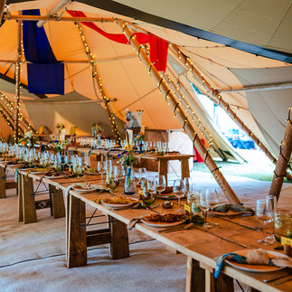 "We used Tribeca Tipis for our wedding and could not have made a better choice. Jim and Kathryn were fantastic from start to finish - patiently answering all my many questions and thinking creatively about how they could help style the tipis in the way I envisioned. You could tell they really cared about how everything would work out. We did the big package with 3 hats, all the lights, all the tables, chairs, flooring, furniture, bar etc etc. Everything looked incredible and it really was the wedding of our dreams thanks to their amazing attention to detail, quality products and incredibly careful set up. They were super friendly at all times. I am just trying to think of another event I can get them back for. We also hired sleeping bell tents for our guests from their sister company Brighton Bells. I would highly recommend both." Jessie & Jurrat